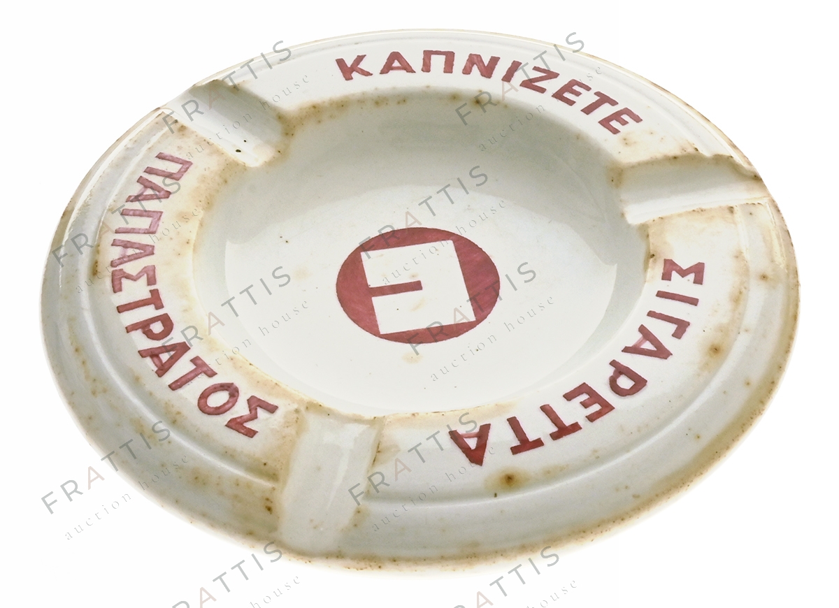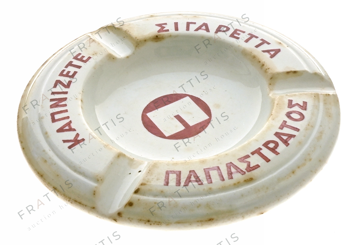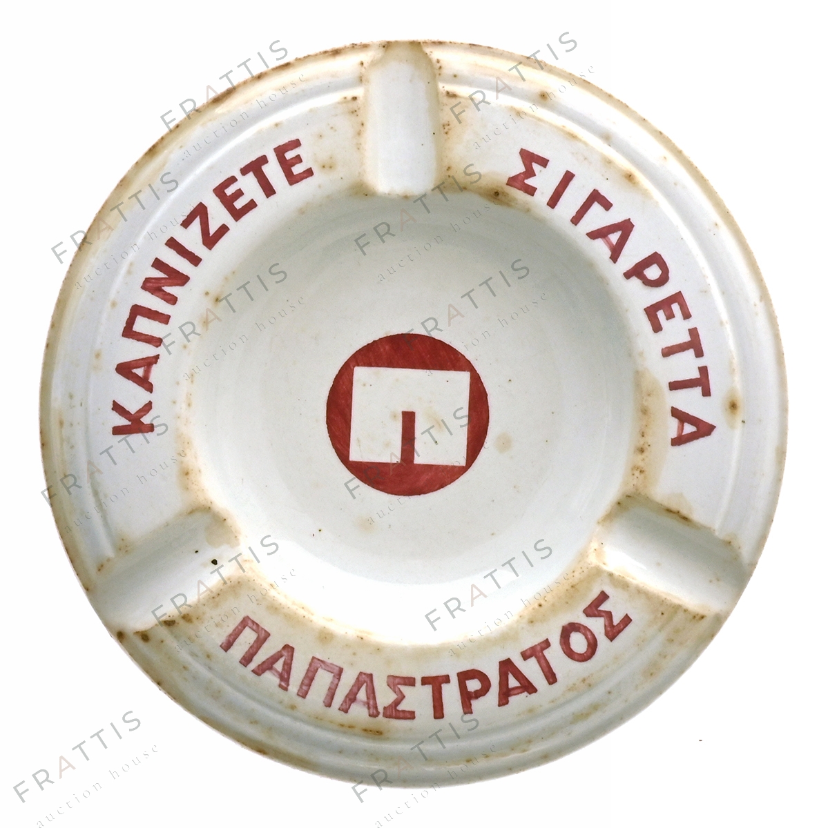 Καπνίζετε Σιγαρέττα Παπαστράτος. Κεραμικό τασάκι. Στην κάτω όψη σφραγίδα κατασκευαστή "Keramikos Athens Greece. Handmade". Διάμετρος 14,5 x 2,5 εκ.