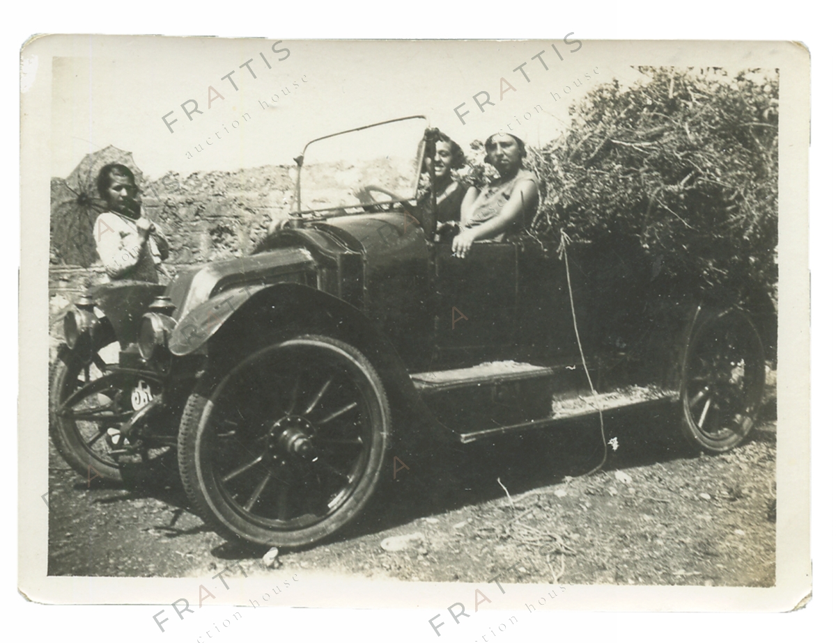 Φωτογραφία της εποχής με αυτοκίνητo και επιβάτες. Στην πίσω όψη χειρόγραφη σημείωση "Γλυφάδα 01.09.1929". Διαστάσεις 8,6 x 8,7 εκ.