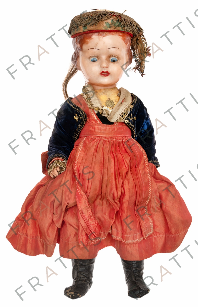 Κούκλα με παραδοσιακή ενδυμασία του 1821. Τέλη 19ου αιώνα. Ύψος 45 εκ.